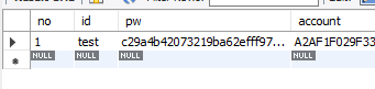 pw, account는 암호화되어 있는 것을 볼 수 있습니다.