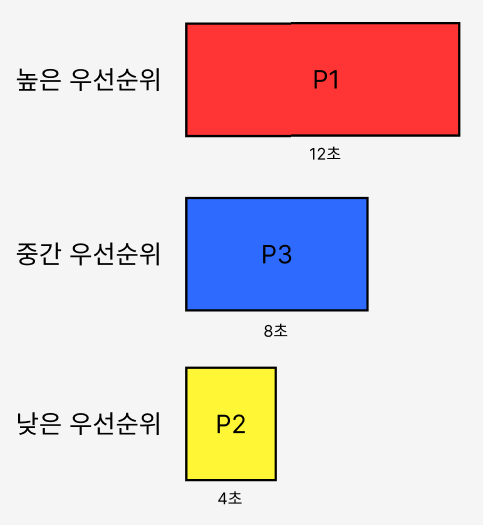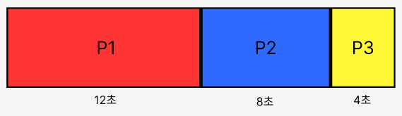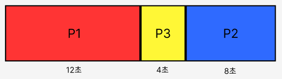 실행 시간이 위와 같은 3가지 작업을 실행할 때, 실행 순서는 위 그림과 같을 것입니다.